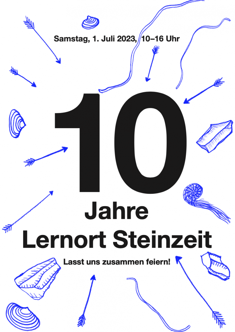 Am 6. Juli 2013 haben wir mit einem grossen Fest die Eröffnung des Lernortes Steinzeit gefeiert. Seitdem haben unzählige Schulklassen unseren Workshop zur Alt- und Mittelsteinzeit besucht. Diese erfolgreichen 10 Jahre wollen wir nun am Samstag, 1. Juli 2023, von 10–16 Uhr feiern. Das Programm und weitere Infos zum Jubiläumsanlass findet ihr auf unserem Flyer.